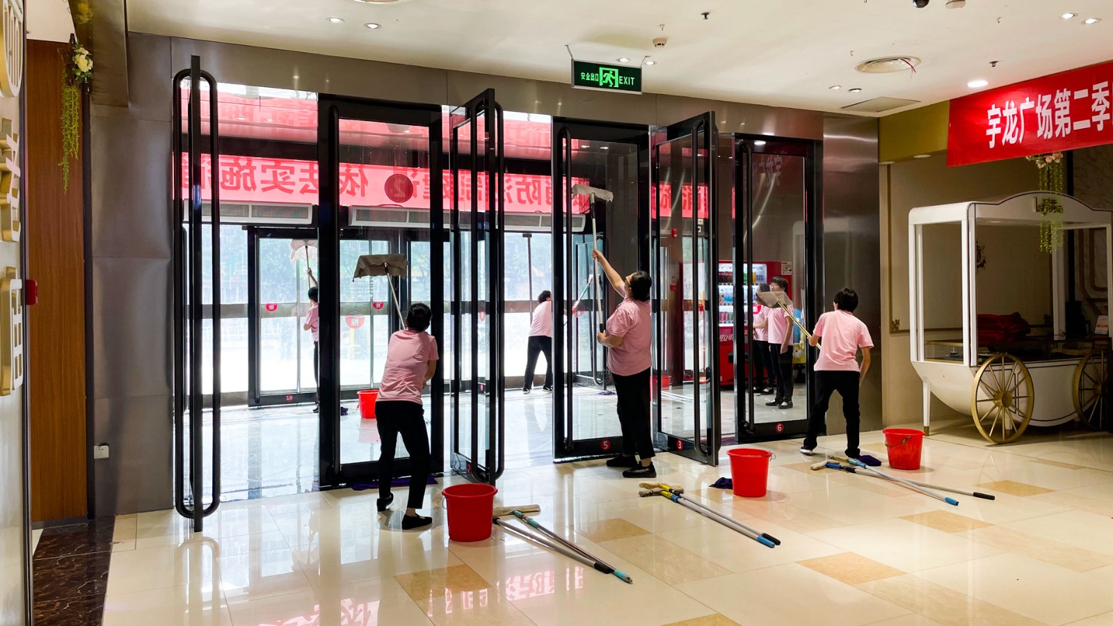 6月10日上午,宇龍廣場技能比拼系列活動--保潔科技能比拼,在廣場一樓東門舉行,出席本次比賽的領(lǐng)導有集團公司副董事長賀總、商貿(mào)公司總經(jīng)理于總、集團公司管理部副經(jīng)理尚培恒。