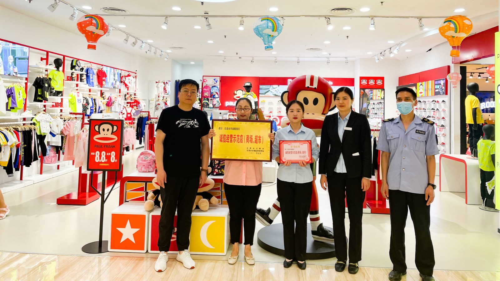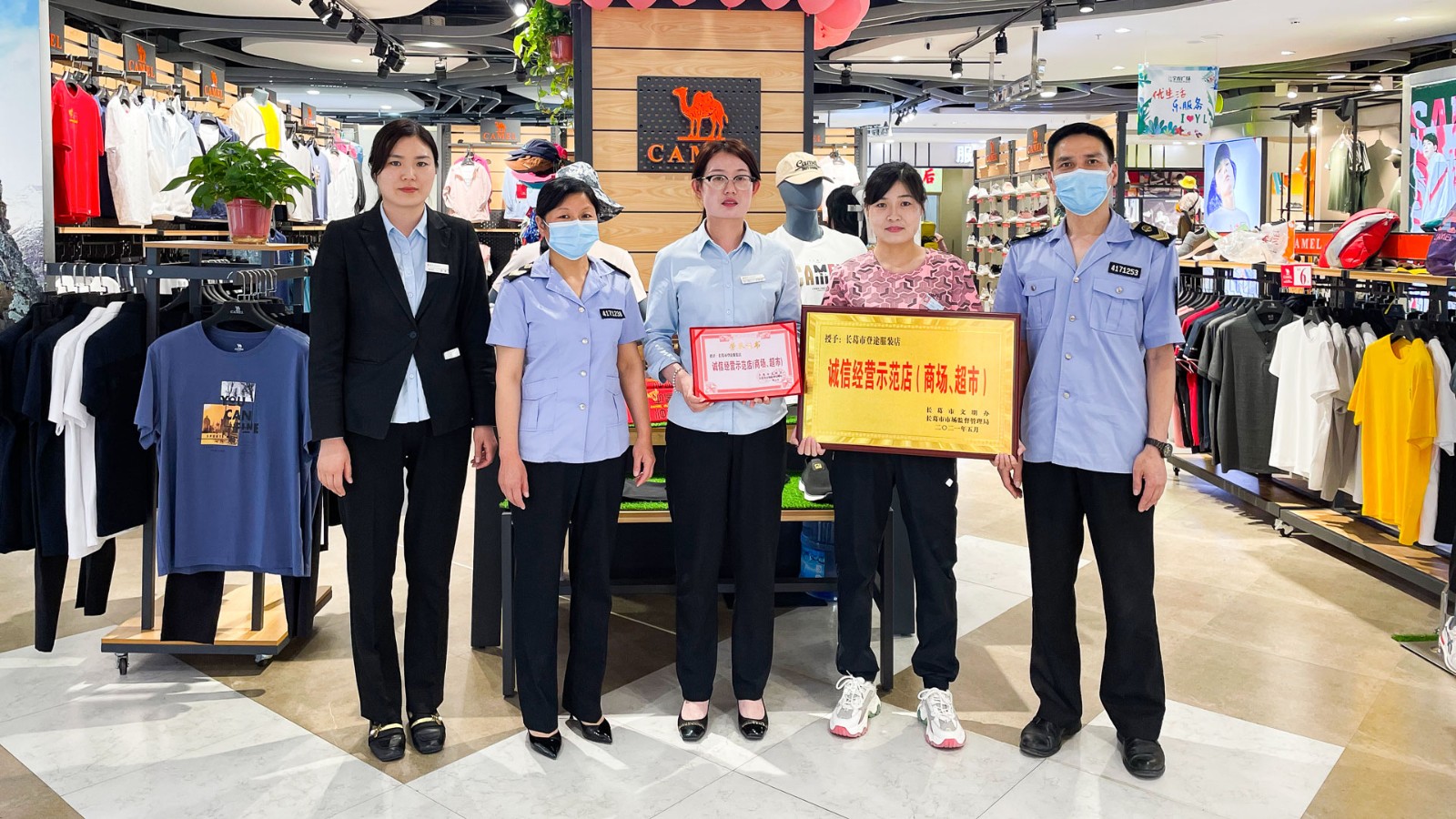 5月25日上午,長葛市市場監(jiān)督管理局領導一行5人來到宇龍廣場為商貿公司頒發(fā)《2020年度誠信經營示范店(商場、超市)》榮譽證書,商貿公司執(zhí)行董事胡總、行政副總楚總代表公司受獎。本次榮獲誠信經營示范店的還有駱駝、馬克華菲、大嘴猴等商戶。