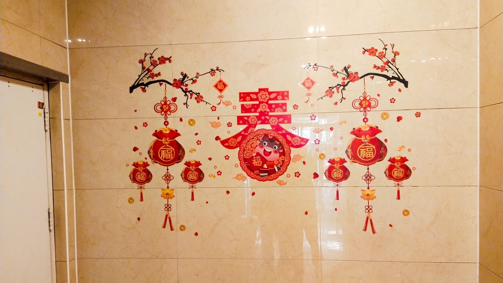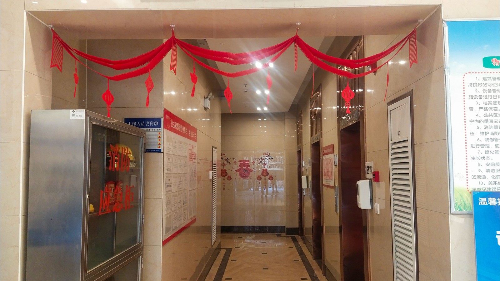 為去舊迎新,2月3日(農(nóng)歷12月22)當(dāng)天,宇龍廣場(chǎng)公寓物業(yè)自己動(dòng)手對(duì)公寓樓大廳進(jìn)行春節(jié)氛圍裝飾。掛燈籠、掛中國(guó)結(jié)、貼壁畫等,整個(gè)大廳洋溢著濃厚的過年氛圍。