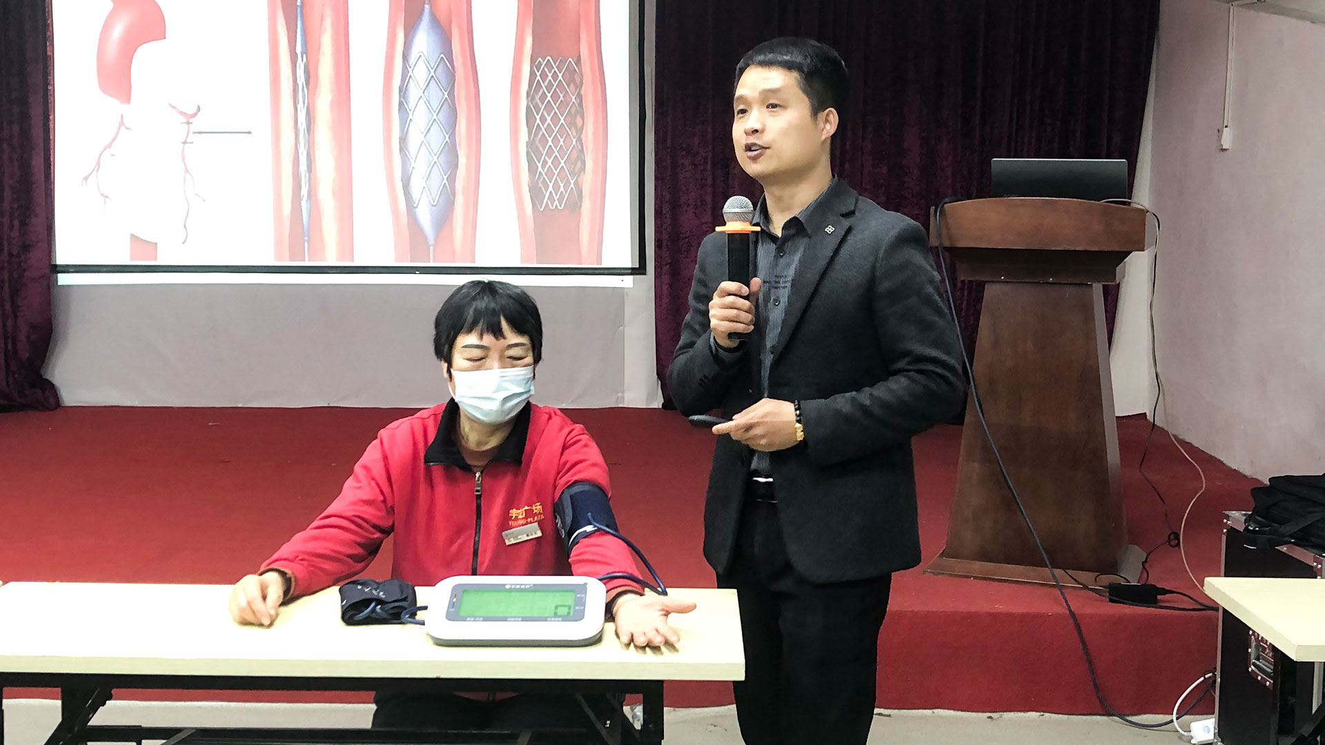高亮老師從緊急救護知識講解、職業(yè)性疾病慢性病預防和治療、心腦血管疾病的預防及健康四大基石、職業(yè)病的防治(肩周炎、頸椎病的防治)、如何正確區(qū)分與配備家庭醫(yī)療設備等健康內容作了深入淺出的講解。高亮老師生動的講解,并不斷與大家互動,現(xiàn)場進行實際操作、體驗,加深大家的印象。